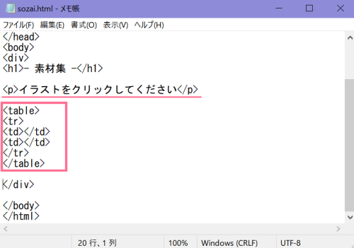 </tr>の下に貼り付けて、リンク先と画像とタイトルを変更する。