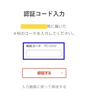 SNSに届いた認証番号を入力して認証する。