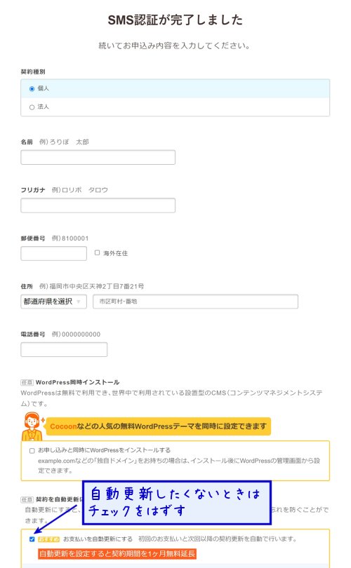 認証が完了したら必要事項を入力し、確認画面へ。