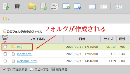 imgフォルダをダブルクリックして、フォルダを開きます。