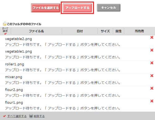 「アップロードする」をクリックすると、ファイルがアップロードされます。