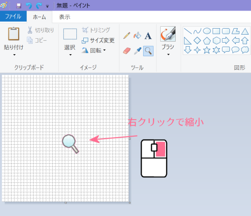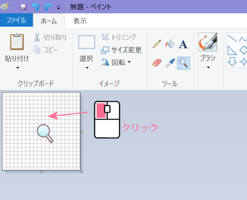 カーソルが虫眼鏡のアイコンになるので描画上でクリックする。