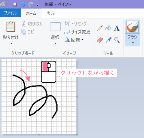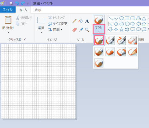 「ブラシ」ボタンをクリックして使いたいブラシを選ぶ。