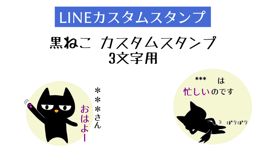 黒ねこ カスタムスタンプ 3文字用