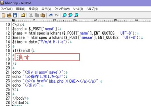 の中を削除し、削除した部分に記述。