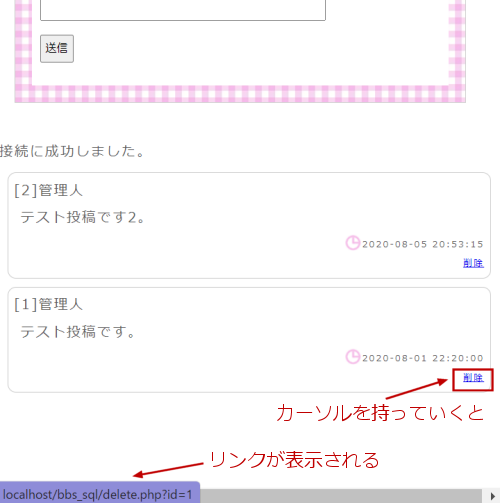 すでに「index.php」にリンクがありますが、これは delete.php へ値を渡しているコードです。