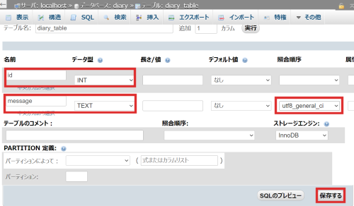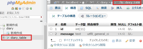 テーブル名:diary_table