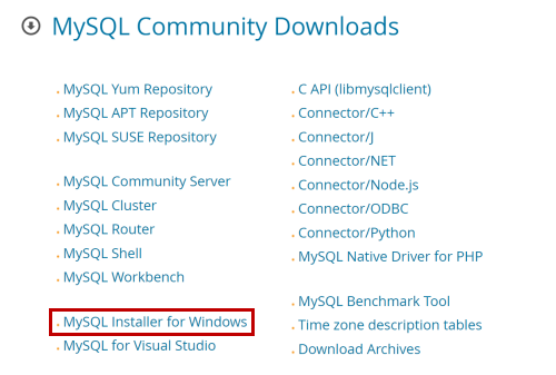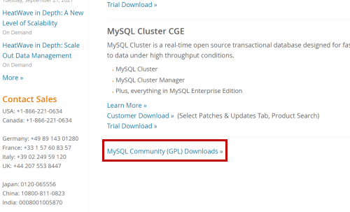 ダウンロード画面の「MySQL Community(GPL)Downloads」をクリック。