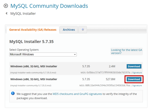 ここでは バージョン5.7.32のダウンロードとインストールの説明をします。