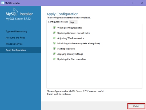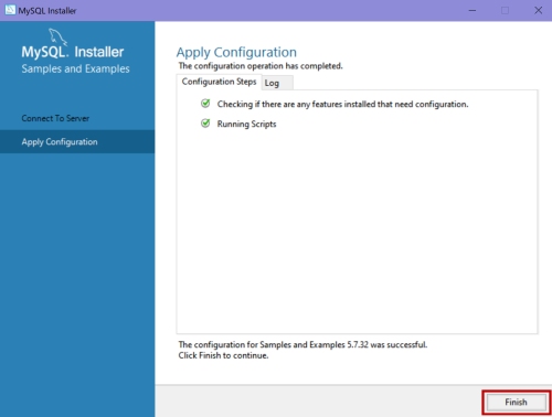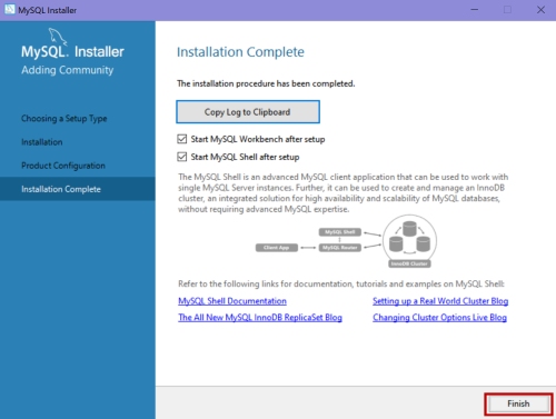 必要なプログラムがインストールされたあと「Finish」ボタンをクリックします。。