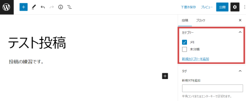 右側の「カテゴリー」をチェック