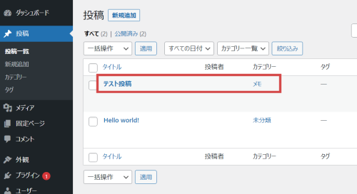 「新規追加」記事のサンプルがありますが、気にせず先に進んでください。
