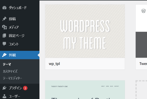「外観」で確認すると、作成したオリジナルテーマが表示されます。